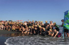 平塚の「海」を使った泳ぐエキデン。特別な道具を必要とせずに、誰でも手軽に参加できるイベント。より多くの方に参加頂けるよう、仲間と一緒に参加する駅伝形式に大会にする工夫もしています。