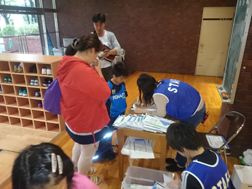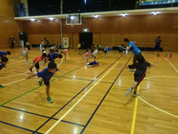 このスポーツ教室は産業能率大学の学生達が授業として運営サポートをしております。授業は前期と後期で分かれており、今回より後期の授業のグループの担当でした。雨で体育館に会場が変更となりましたが、スムーズに教室を運営することが出来ました。事前に用意していた保護者の観覧用の椅子が足りなくなると自主的に追加したりといった気配りも見せてくれました。