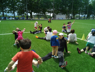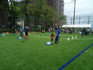 このスポーツ教室は産業能率大学の学生達が授業として運営サポートをしております。2回目の運営となり、初めてだった前回より自主的に動ける面も増えてきました。子どもたちに対しても、とてもいい笑顔で接してくれていました。