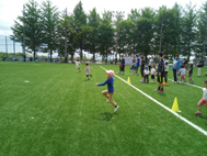 用具でコースを作ってのサーキットメニュー。隣の親子との競争も。