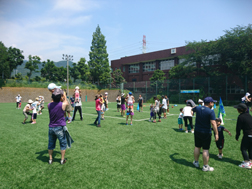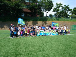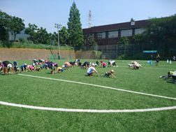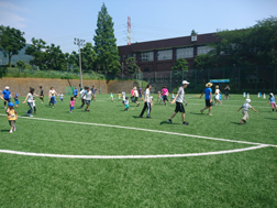 暑い中でしたが、細かな休憩、給水も入れながらみんな最後まで元気に取り組んでくれ、恒例の記念撮影で教室は終了しました。