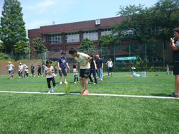 このスポーツ教室は産業能率大学の学生達が授業として運営サポートをしております。それぞれの学生が、各役割を経験できるよう、役割は教室によってローテーションで変わっていきますが、前回の反省や改善点などは次の担当へ引き継いで共有し、それぞれの経験、教室のレベルアップに取り組んでいます。