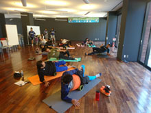 筋膜とは何なのか、筋膜と身体のコリや痛みとの関係性など、正しく動作を行うことで筋膜リリースやストレッチの効果も最大化されるので、皆さんに理解を深めてもらいました。