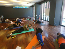 何かの合間に行えるいくつかのストレッチに取り組みましたが、中でも、寝転がって壁に足を付けるだけの「何もしないストレッチ」は、参加者も初めて行ったという方がほとんどでした。