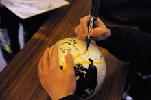 ホームゲームでは、社名入り「ちょうちん」を選手が持って入場します。是非ご注目下さい。