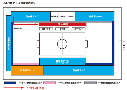 ・スタッフの来往、審判席、担架待機エリアなどが座席前方に位置し試合中視野を妨げる場合がございますが、ご了承の上ご観戦下さい。