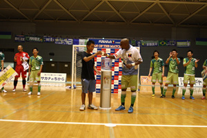 ホームゲーム勝利時に最も活躍した選手に贈られる「㈱アクアクララ湘南 提供 マン・オブ・ザ・マッチ」。 8/4のペスカドーラ町田戦では「No.10ボラ」選手が受賞いたしました!
