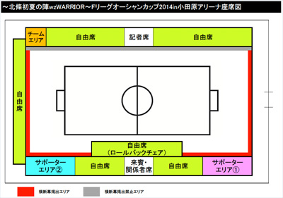 5月25日(日)に行われます「 〜北條初夏の陣 wz WARRIOR〜 Fリーグ オーシャンカップ2014 in 小田原アリーナ」三位決定戦(M-13)「シュライカー大阪 vs 湘南ベルマーレ」戦のサポーター応援エリアが変更になりましたのでお知らせいたします。