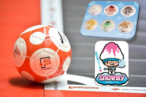 『snowmy』を食べて、駒沢体育館で白熱したフットサルの戦いを観れば、いつもよりも盛り上がること間違いなし!!さらに、プレミアムシート(プラチナ/ゴールド)チケットをご購入のお客様にはsnowmy引換券をプレゼント!