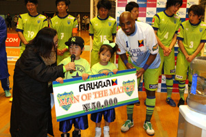 ホームゲーム勝利時に最も活躍した選手に贈られる「㈱アクアクララ湘南 提供 マン・オブ・ザ・マッチ」。 12/6アグレミーナ浜松戦では「No.10ボラ」選手が受賞いたしました!