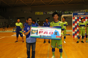 ホームゲーム勝利時に湘南ベルマーレフットサルクラブ後援会組織「FAO(小田原フットサルアカデミー)」から送られる「FAO賞」。 5/24のアグレミーナ浜松戦では「No.7安藤 良平」選手が受賞いたしました!
