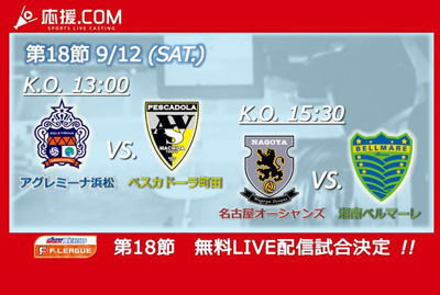 今週末に開催される、ゼビオFリーグ18節名古屋戦が、「応援.COM」にてLIVE配信されることが決定しましたのでお知らせします。