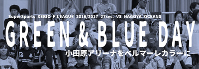 1月7日(土)ゼビオFリーグ2016/2017第27節名古屋オーシャンズ戦にて、小田原アリーナをチームカラーに!『GREEN&BLUE DAY』を開催いたしますのでお知らせいたします。
