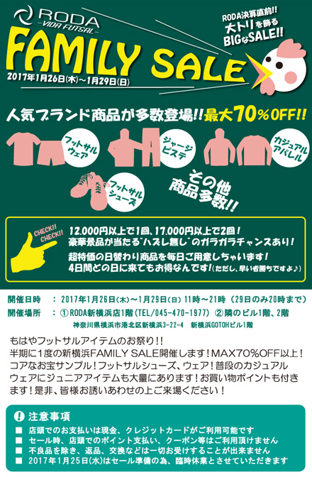 フットサル専門店RODAがファミリーセールを開催します。