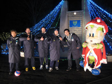 12月18日に上府中公園でクリスマスイルミネーションの点灯式典が行なわれました。奥村監督・選手4名(#2瀬戸選手・#7シニーニャ選手・#17冨金原選手・#12阿久津選手)・キングベルが参加し、多くの方々と触れ合いました。