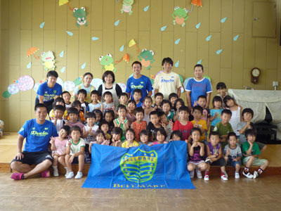 7月4日寒川町にあります旭保育園に、渡邊選手、政野屋選手、阿久津GKコーチの3名が行ってきました。