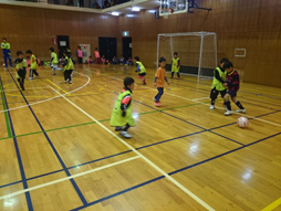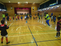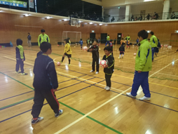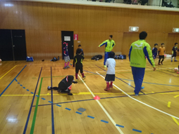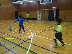 低学年のグループ。テーマはフットサル技術のひとつである足の裏と攻守の切り替え。