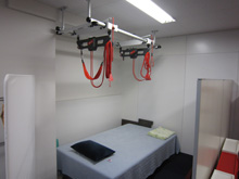 リハビリから本格的なコアトレーニングまで様々なトレーニングに対応する最新のトレーニング機器「レッドコード」などを備えた施設。前は湘南の海が広がります。