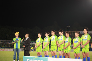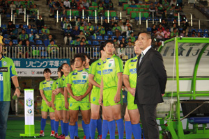 湘南ベルマーレ サッカートップチーム 水戸ホーリーホック戦でハーフタイムで湘南ベルマーレ ラグビーチーム Bell7のお披露目をしました。