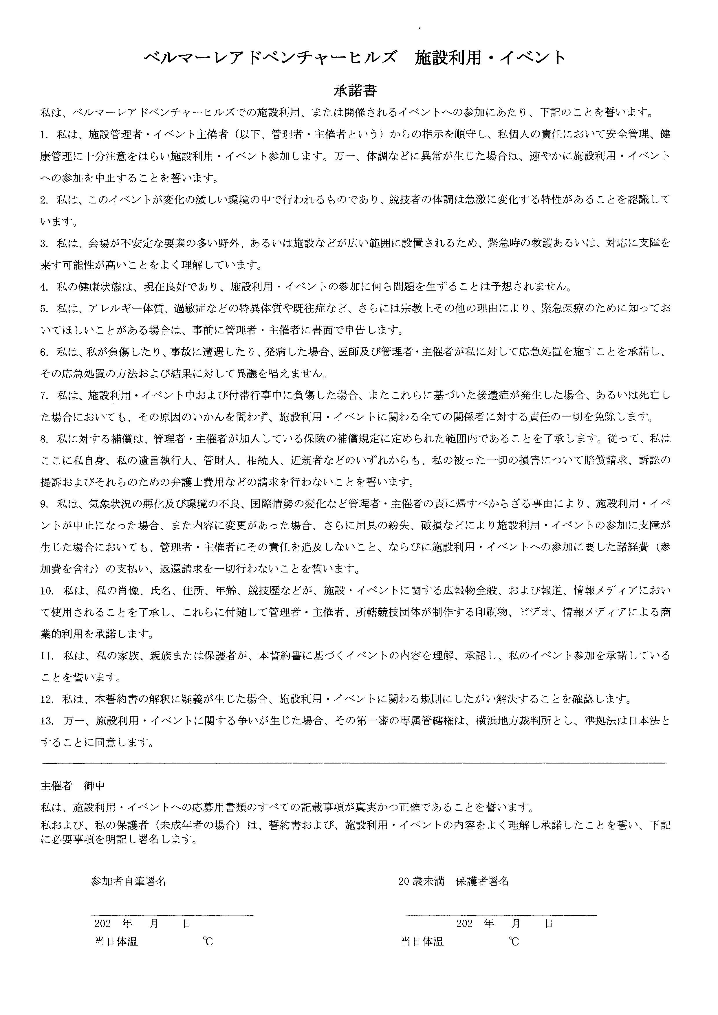 ・下記注意事項と承諾書をよく読み理解した上でご参加ください。