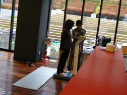 教室の開始の前には、すっかり恒例となった体組成計の測定で体の状態をチェック。