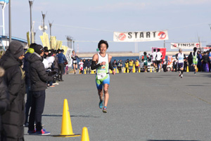 戸原は、得意のバイク序盤で深浦(イステムジャパン / ハリアーズ)と2人で逃げ、さらに後ろから追いついた篠崎(モンスターバイク)と深浦を引き離し2人の逃げが決まりトップで第2ランスタート。ランの得意な深浦につけた45秒の差をどこまで逃げきれるか...という状況でしたが、1kmごとに10秒ずつ縮めてきた深浦に対して、最後まで粘って最初にフィッシュラインを越える事ができました。